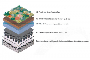 In het ontwerp en de constructie is rekening gehouden met de consequenties: een extra hoogte van de dakopbouw van 137 mm en een extra gewicht volledig verzadigd van circa 150 kg/m².